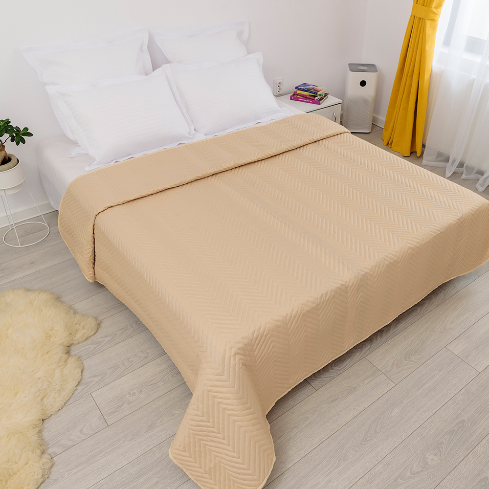 - CONȚINUTUL PACHETULUI: 1 cuvertură de pat (dimensiuni: 210x200 cm ±5cm), făcută din microfibră periată de 80gr/mp matlasată ultrasonic.