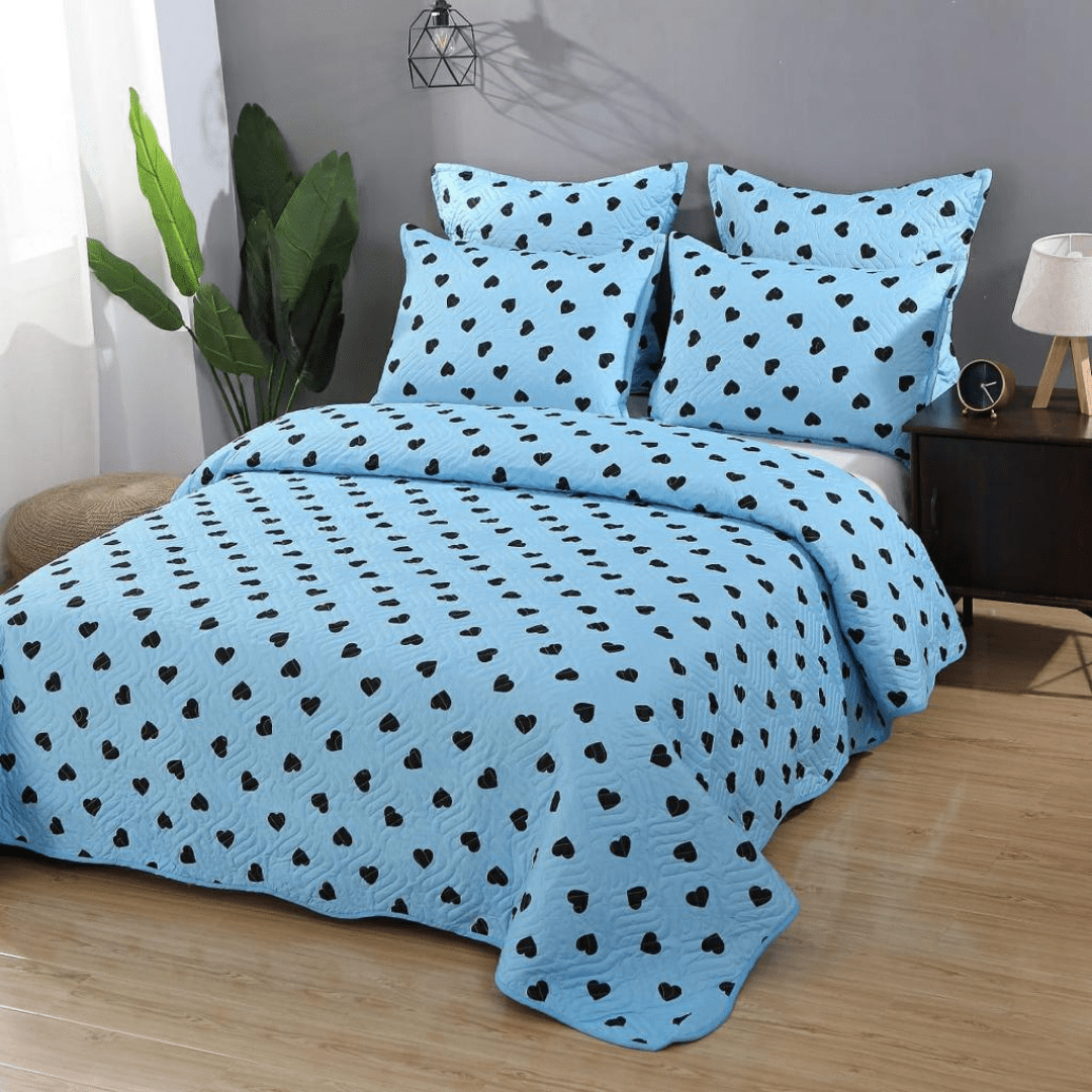 Aest set conține cuvertură potrivită pentru pat matrimonial de 2 persoane confecționată din 100% microfibră matlasată colorată, 2 fețe de pernă de 50x70 cm și 2 fețe de pernă de 70x70 cm. Designul modern, face ca acest set să fie ideal pentru a îți decora dormitorul, oferindu-i un aspect ordonat, bine îngrijit și mereu la modă. Matlasarea celor cinci piese este realizată ultrasonic, prin proceduri specifice. Materialul este de calitate superioară și nu se decolorează la spălare.