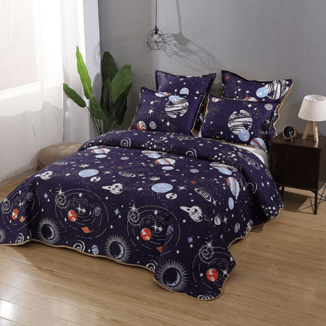 Set 5 Piese Cuvertura de Pat DUO + 2 Fete de Perna 50x70 cm + 2 Fete Perna 70x70 cm - Calatorie Spatiala - CVBS102B