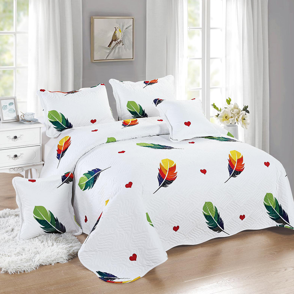 Set 5 Piese Cuvertura de Pat Finet + 2 Fete de Perna 50x70 cm + 2 Fete de Perna 50x50 cm - Pene Curcubeu - CVF0006
