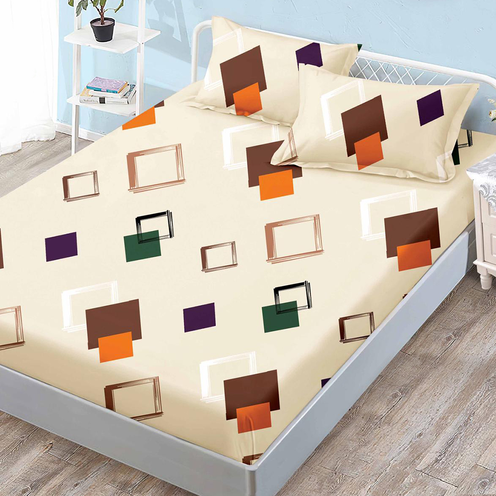 Cearceaf din Finet cu Elastic - 160/180x200 + 2 Fete Perna, Crem Romburi - CEF0130