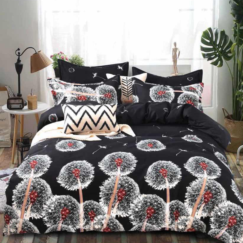 Lenjerie DUO Bumbac Satinat Visinie Crini Albi LBD0149Cearceaf cu Elastic - 160/180x200 + 2 Fete Perna, Albastra Inimioare Negre - CE0039