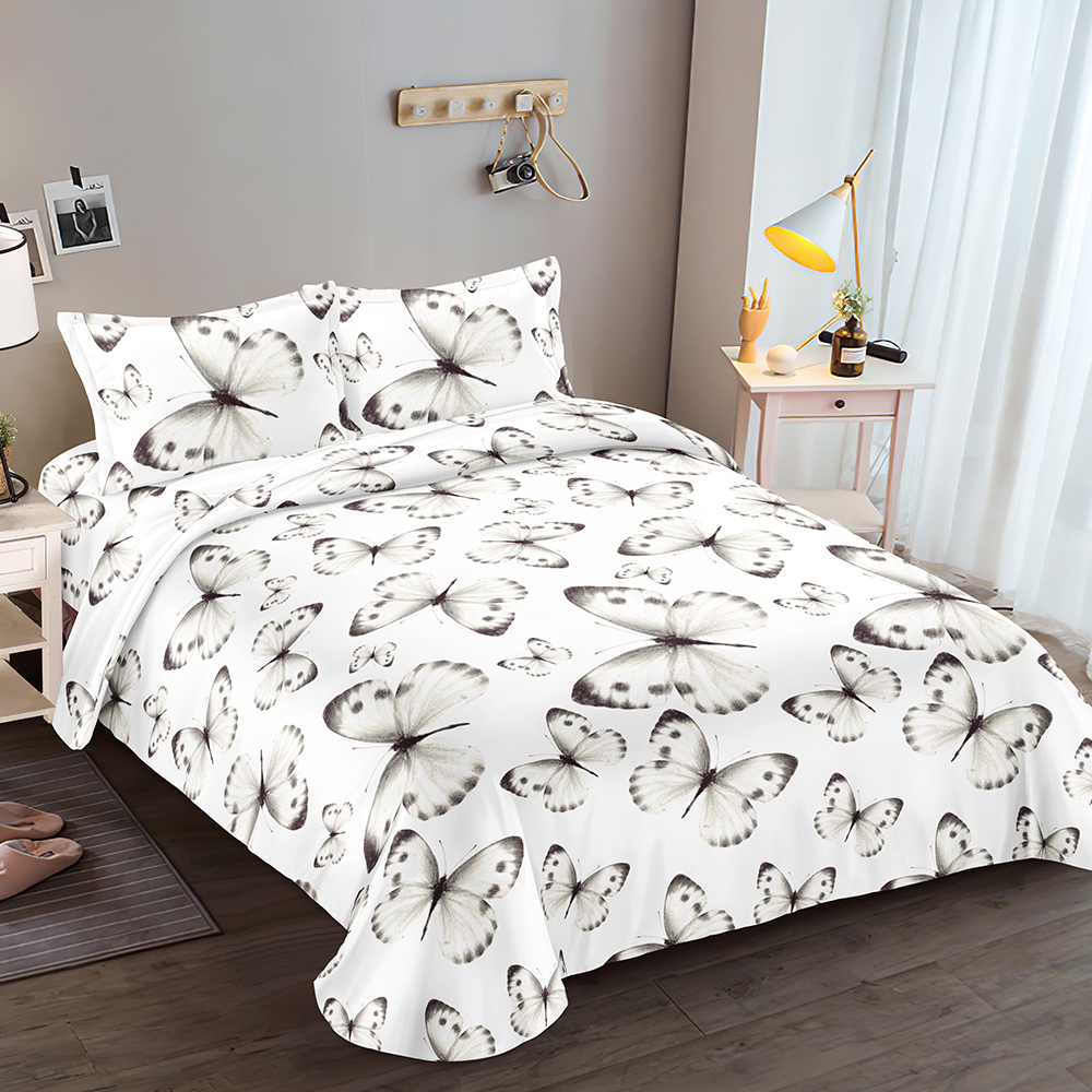 Lenjerie Bumbac Satinat Alba Fluturi Gri LBD0345