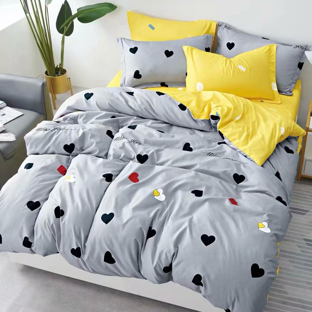 Lenjerie Bumbac Satinat Gri Inimioare LBD0319