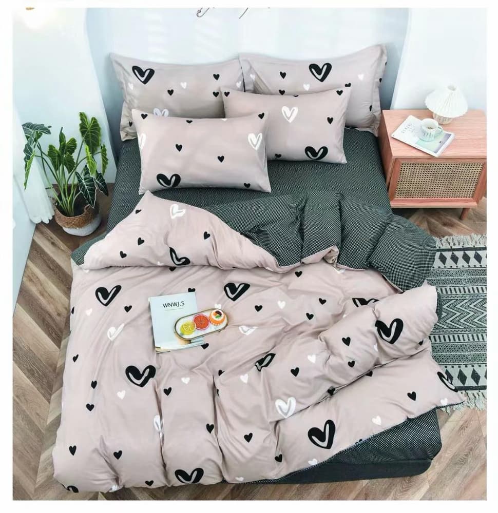 Lenjerie Bumbac Satinat Gri Kaki Inimioare LBD0182