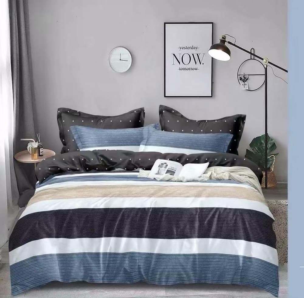Lenjerie de pat 2 persoane (4 piese) confecționată din bumbac satinat de calitate superioară, foarte plăcut la atingere. Datorită amestecului optim de bumbac și satin, această lenjerie asigură confort sporit prin textura sa moale și fină. Aspectul satinat al acestei lenjerii oferă eleganță și rafinament dormitorului. Cele 4 piese cu imprimeu modern sunt croite pentru a se potrivi patului tău matrimonial!