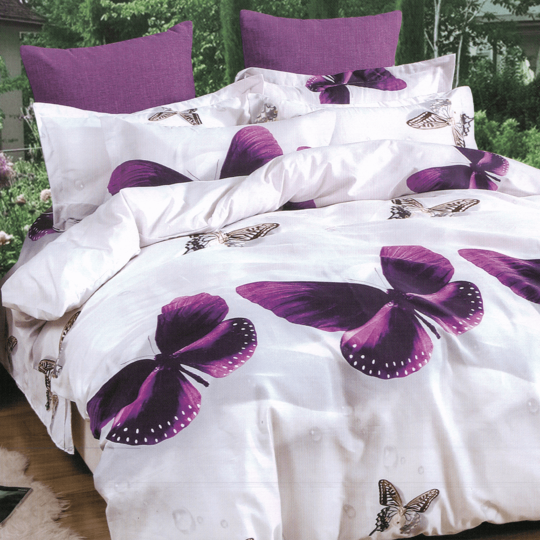Lenjerie de Pat 1 Persoana - Bumbac Finet 3 Piese - Fluturi Mov LFSG0001