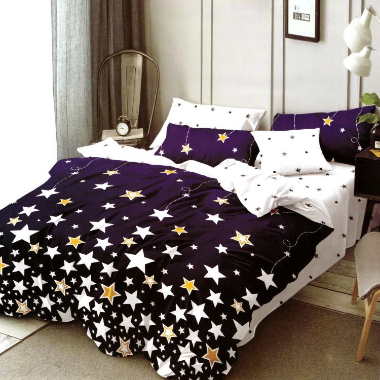 Lenjerie DUO Bumbac Satinat Albastra Stelute Albe si Aurii LBD0053