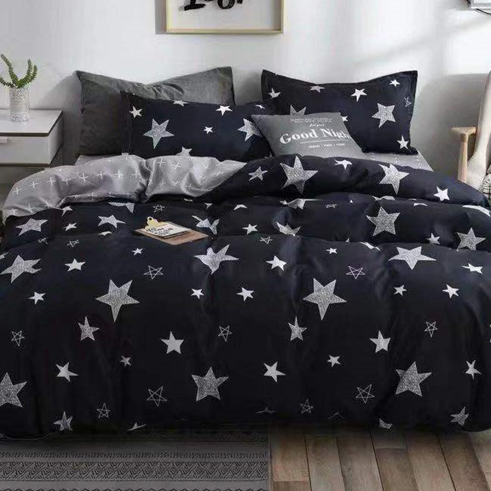 Lenjerie DUO Bumbac Satinat Albastru Inchis Stelute Inchise LBD0101