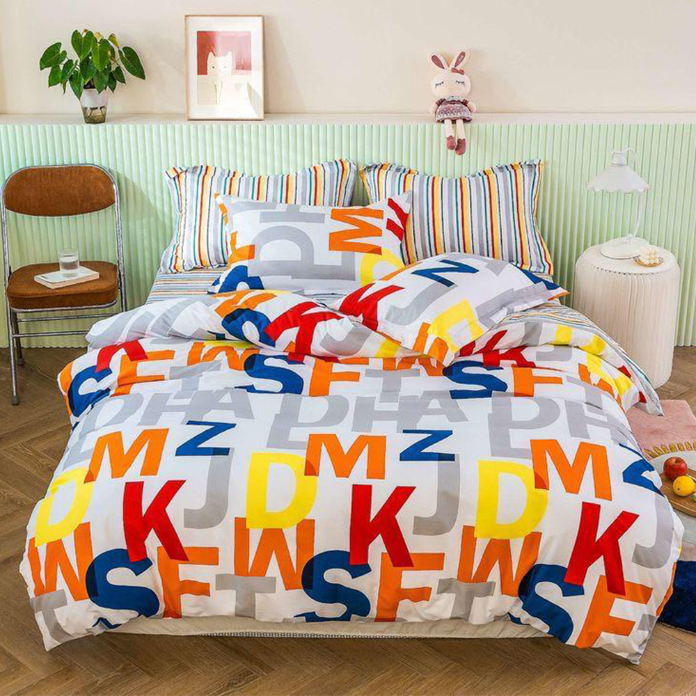 Lenjerie DUO Bumbac Satinat Alfabet Multicolor LBD0143