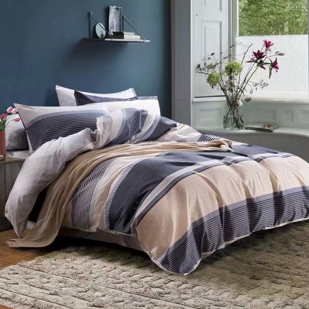 Lenjerie de pat 2 persoane (4 piese) confecționată din bumbac satinat de calitate superioară, foarte plăcut la atingere. Datorită amestecului optim de bumbac și satin, această lenjerie asigură confort sporit prin textura sa moale și fină. Aspectul satinat al acestei lenjerii oferă eleganță și rafinament dormitorului. Cele 4 piese cu imprimeu modern sunt croite pentru a se potrivi patului tău matrimonial!