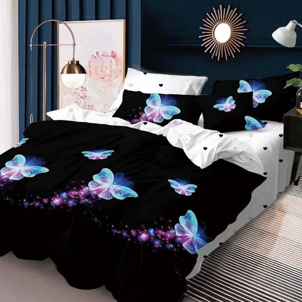 Lenjerie DUO Bumbac Satinat Neagra Fluturi Stralucitori LBD0153