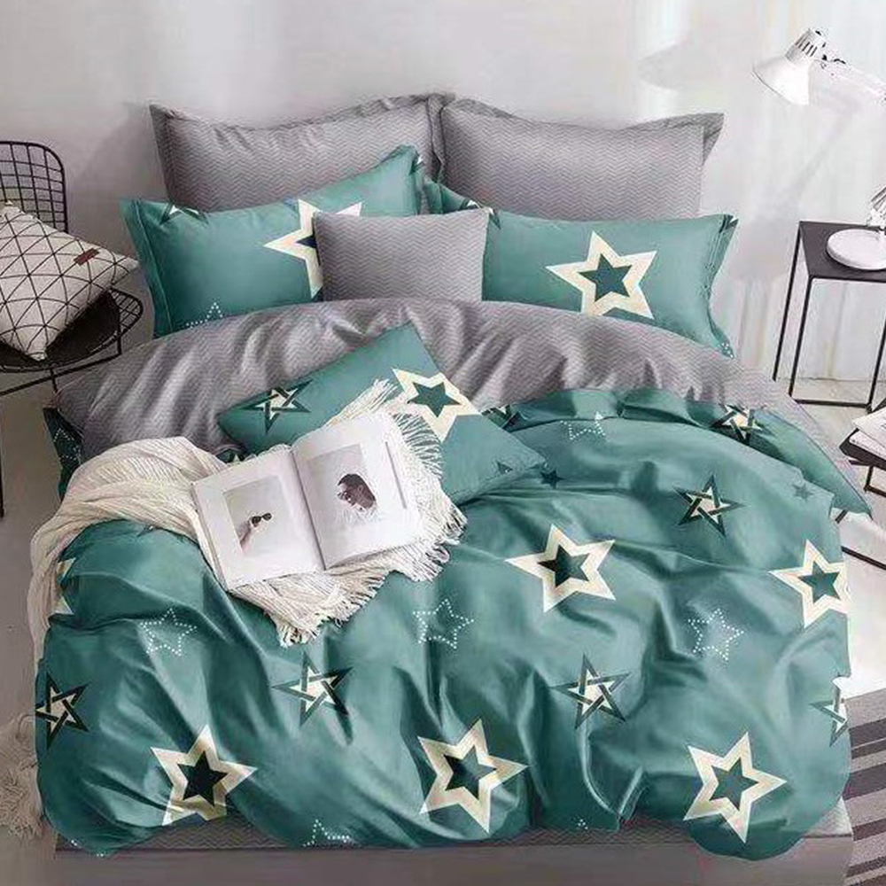 Lenjerie DUO Bumbac Satinat Verde Gri Stelute LBD0105