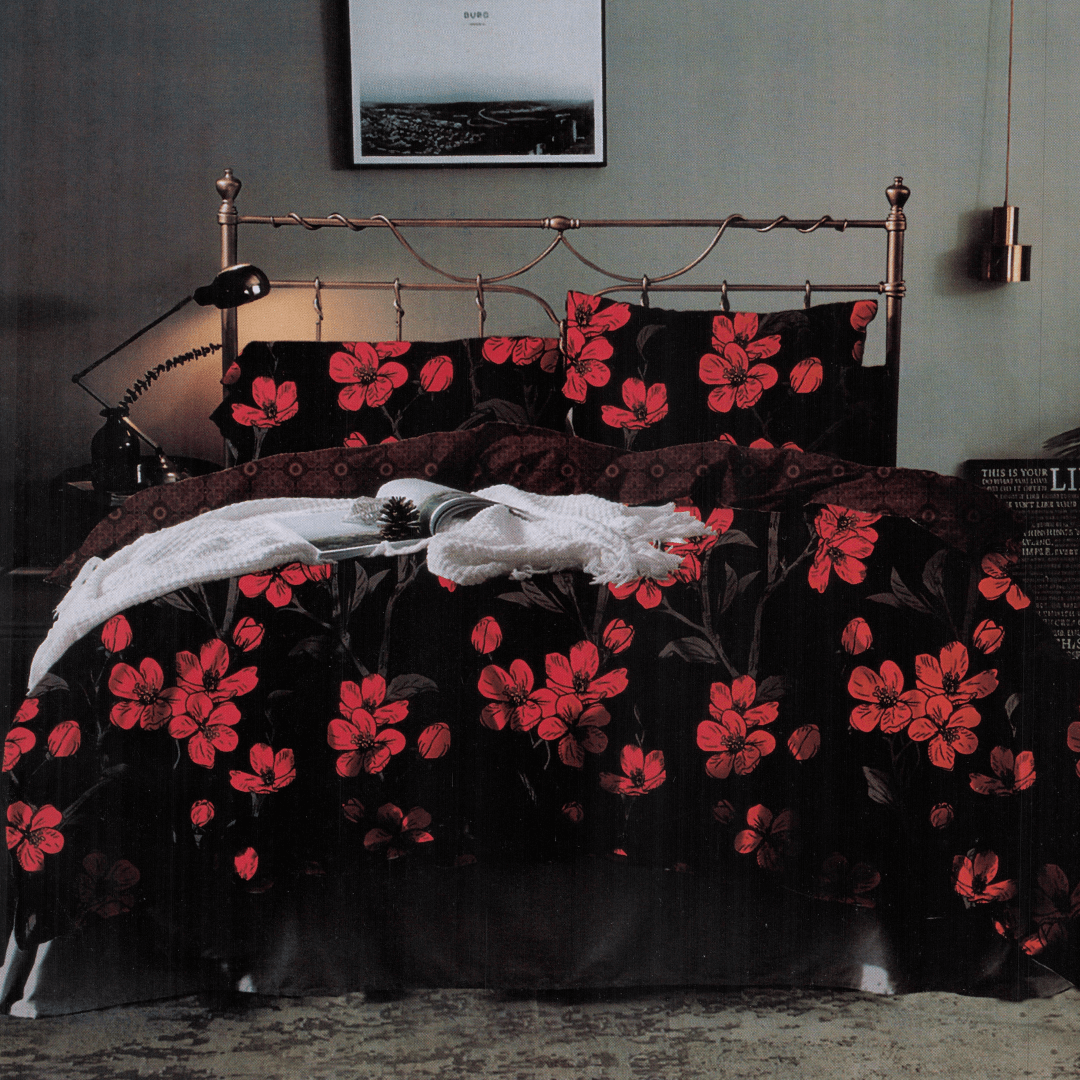Lenjerie de Pat 1 Persoana - Bumbac Finet 3 Piese - Neagra Gradina de Flori LFSG0015