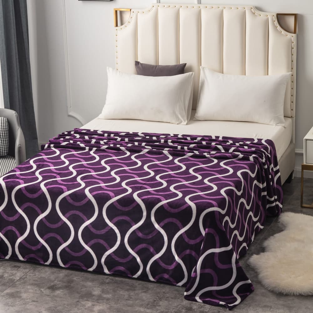 Patura Pufoasa Cocolino (200x230 cm) - Mov Linii Albe - PCC0009