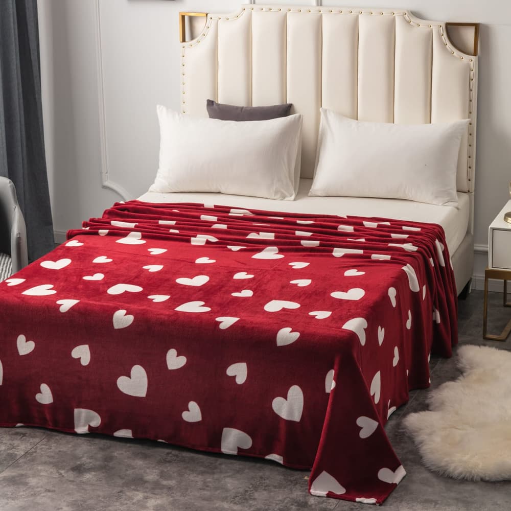 Patura Pufoasa Cocolino (200x230 cm) - Rosu Inchis Inimioare - PCC0012