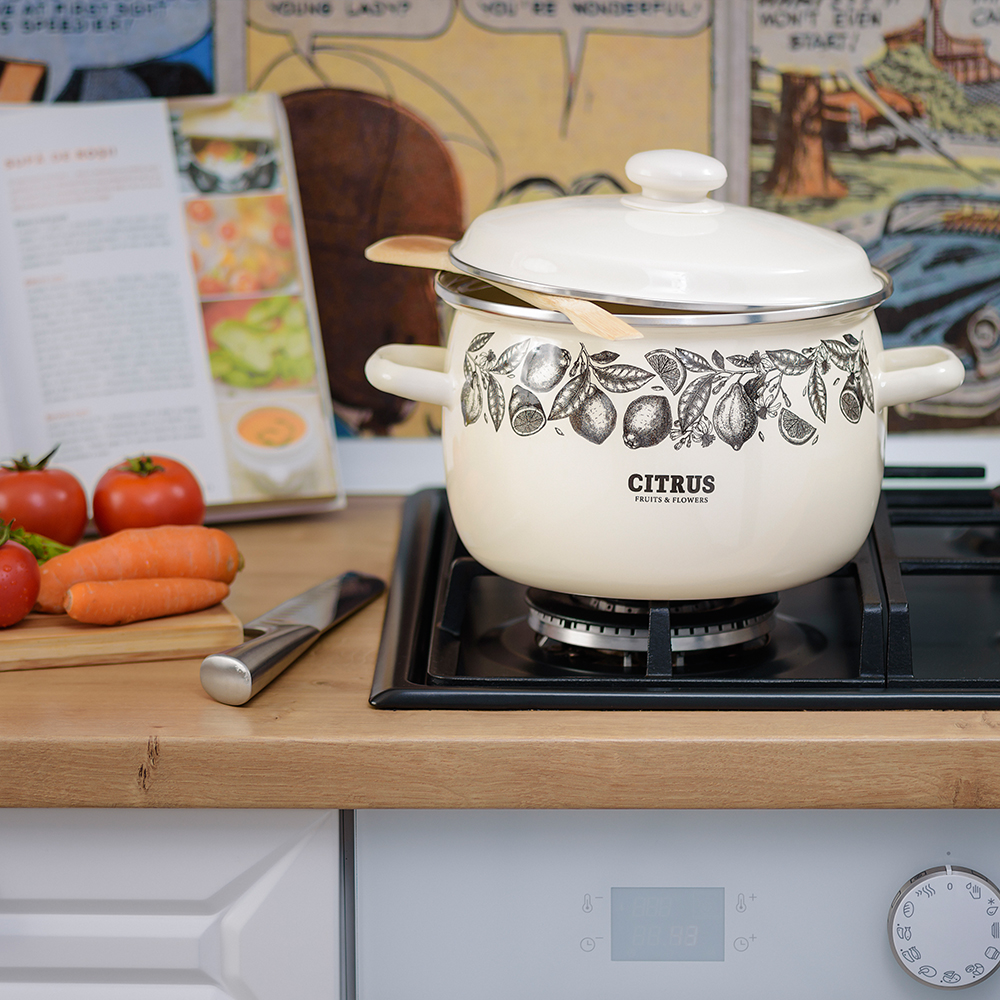 Oala Bombata Dublu Emailata cu Capac - Capacitate 2.5 L - Model Citrus Crem OER0112