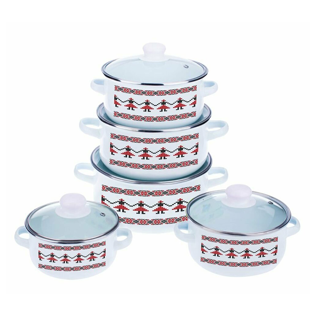 Set 10 Piese Oale Emailate cu Capac - Model Traditional Bucovina - OER0139