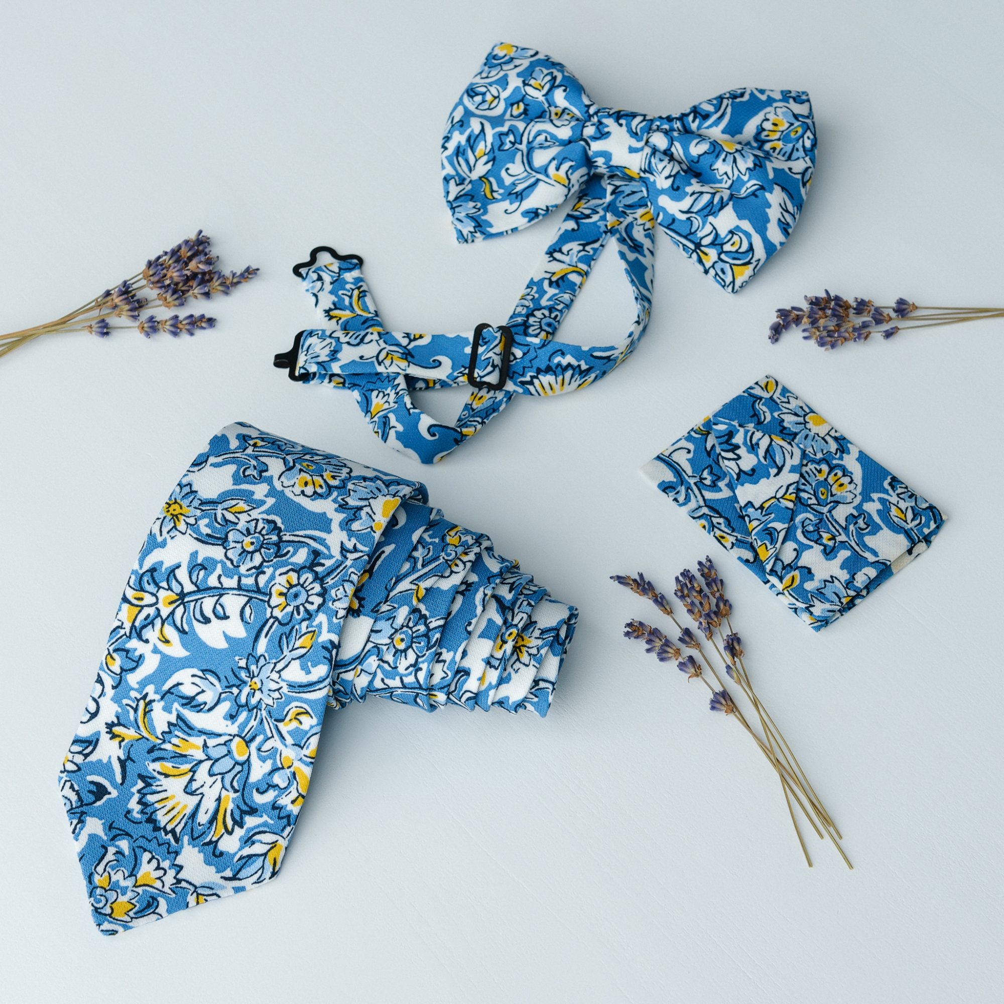 - CONȚINUTUL SETULUI: Acest pachet cadou conține 3 articole: 1 papion (12x7 cm), 1 cravată (45 cm) și 1 batistă de buzunar (28x28 cm). Piesele din set sunt asortate între ele.
