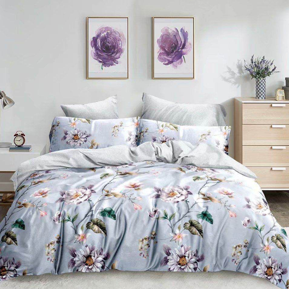 Lenjerie Bumbac Satinat Blue Flori LBD0371