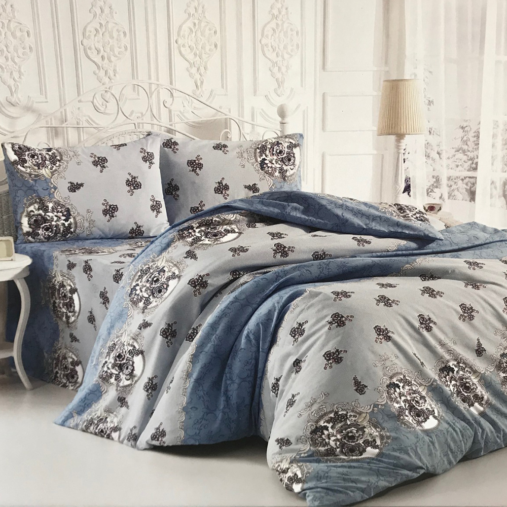 Lenjerie Bumbac Turcesc 100% - Gri Flori Negre LTUR031