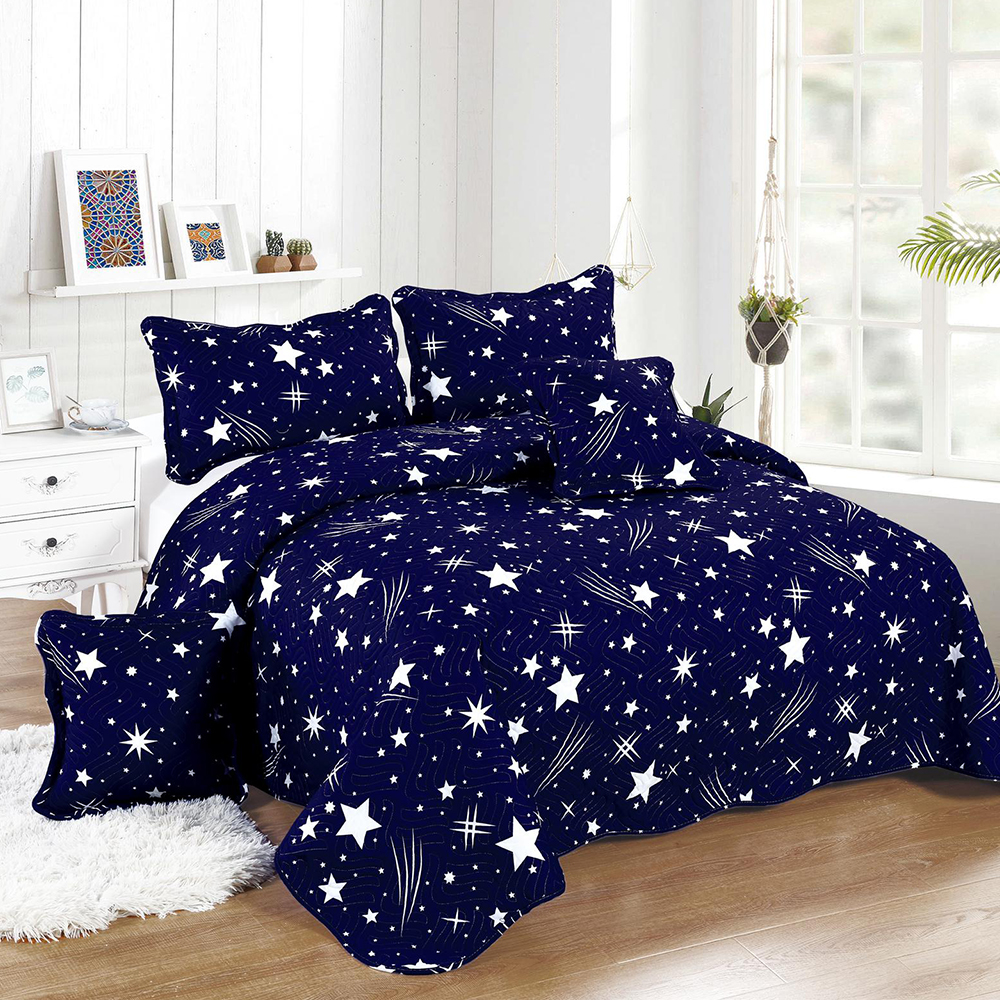 Set 5 Piese Cuvertura de Pat Finet + 2 Fete de Perna 50x70 cm + 2 Fete de Perna 50x50 cm - Ploaie de Stele - CVF0008
