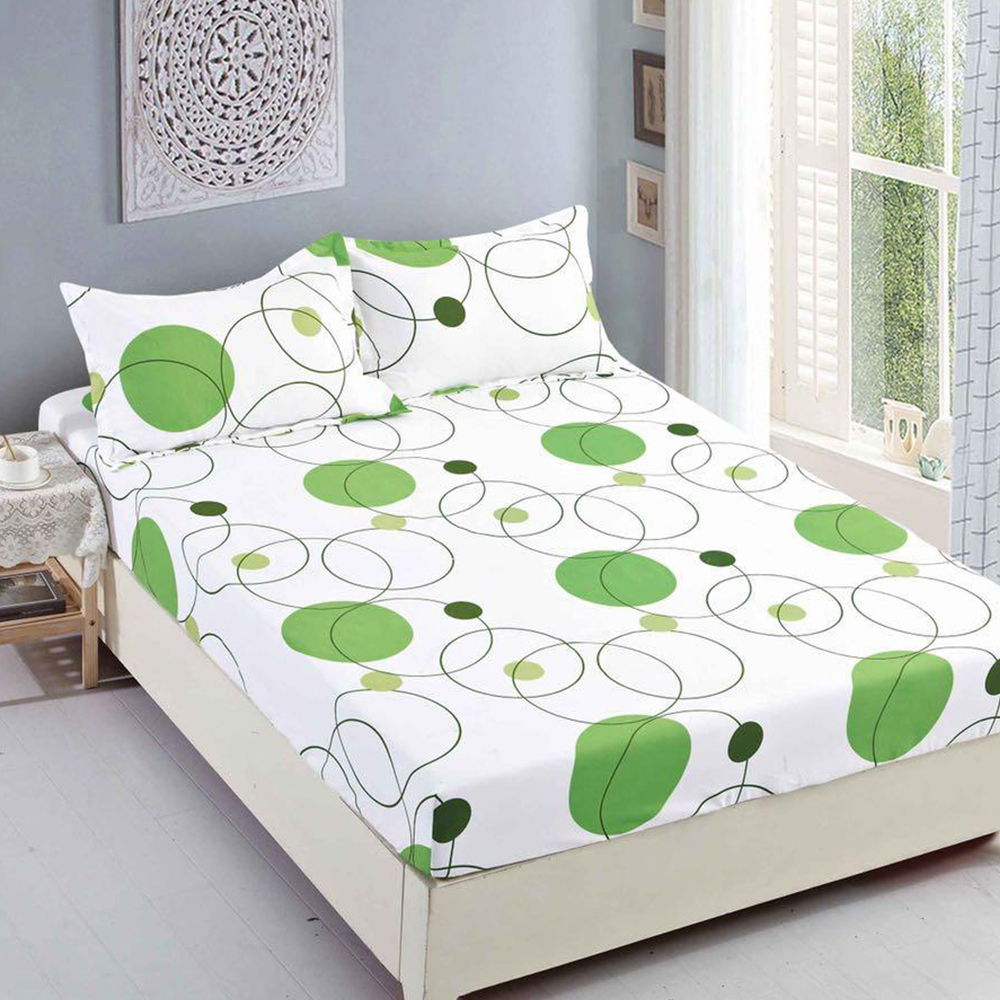 Cearceaf din Finet cu Elastic - 160/180x200 + 2 Fete Perna, Cercuri Verzi - CEF0148
