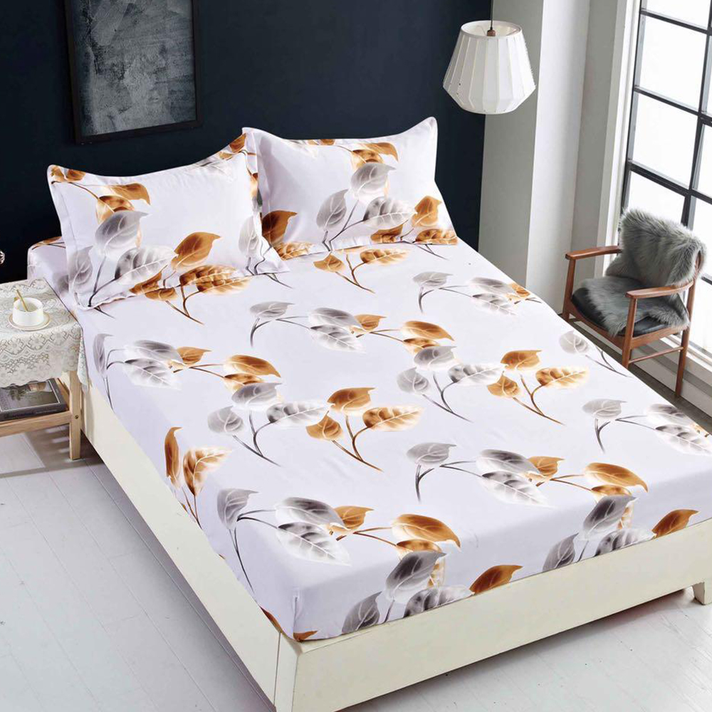 Cearceaf din Finet cu Elastic - 160/180x200 + 2 Fete Perna, Frunze de Bronz - CEF0153