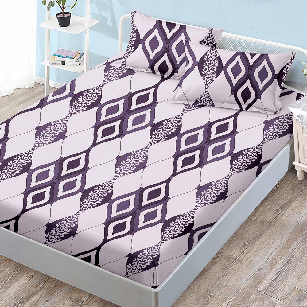 Cearceaf din Finet cu Elastic - 160/180x200 + 2 Fete Perna, Purple Dreams - CEF0132