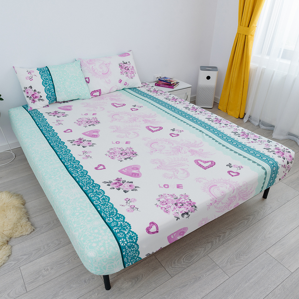 Setul format din cearceaf cu elastic și 2 fețe de pernă reprezintă alegerea ideală, dacă ești în căutarea unui set de lenjerii de cea mai bună calitate. Acest set conține 100% bumbac de calitate superioară, iar piesele sunt ușor de întreținut, nu se scămoșează și nu se decolorează! Materialul este plăcut la atingere, conținutul de bumbac superior din compoziție făcându-l cea mai bună alegere pentru dormitorul tău. Dacă este întreținut corespunzător, conform indicațiilor, acest set se va menține la fel ca în prima zi, pentru multă vreme de acum încolo. În plus, datorită imprimeului deosebit, setul va aduce un plus de eleganță și rafinament patului tău!