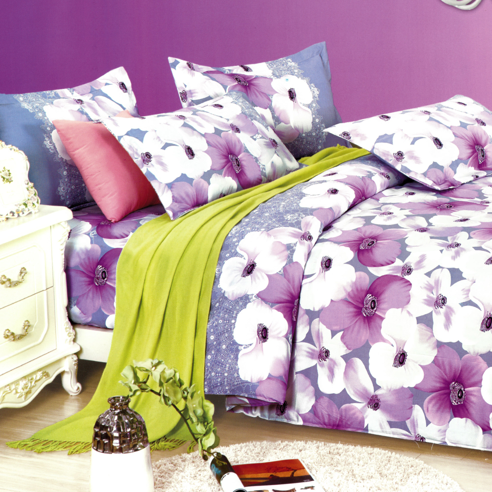 Lenjerie Bumbac Finet 4 Piese Floricele Mov LF0228
