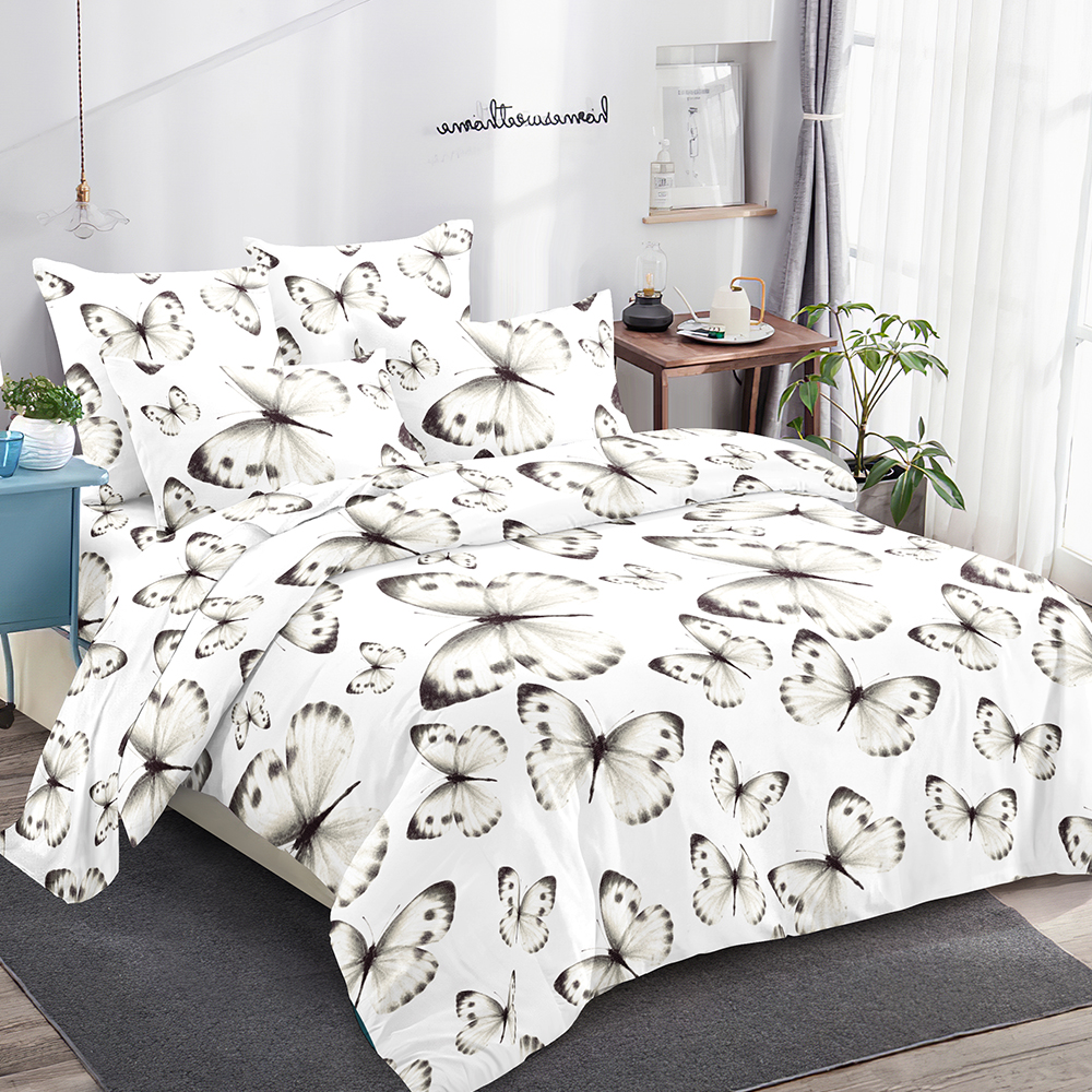 Lenjerie Bumbac Finet 6 Piese Alba Fluturi Gri LF0262