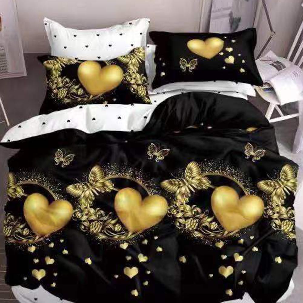 Lenjerie Bumbac Finet 6 Piese Auriu Inimi si Fluturi LF0153