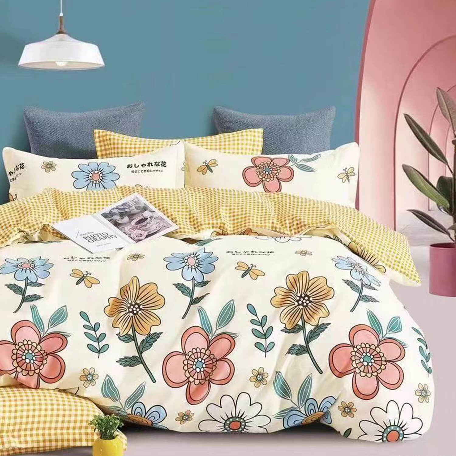 Lenjerie Bumbac Finet 6 Piese Galben Deschis Floricele LF0144