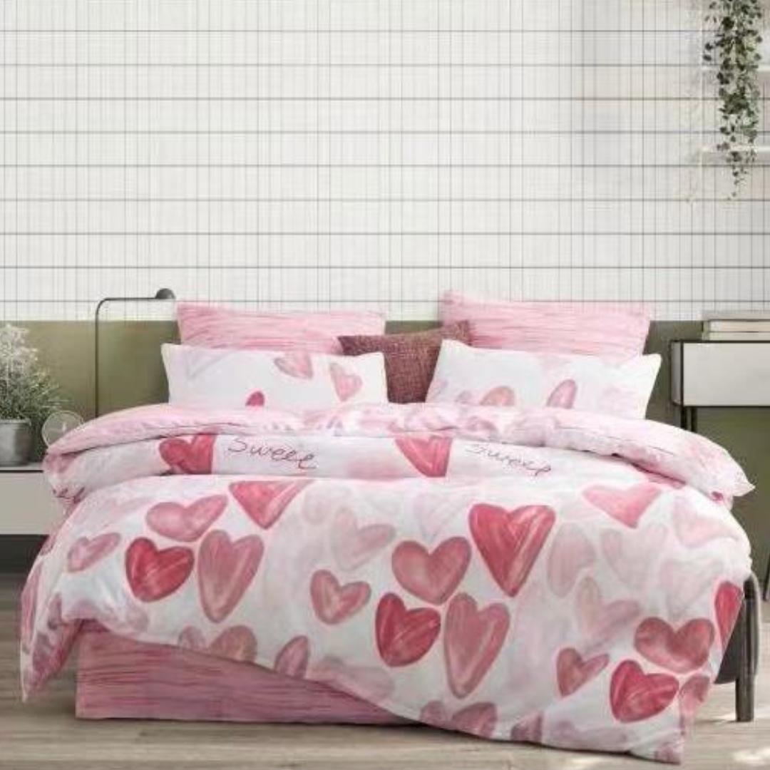 Lenjerie Bumbac Finet 6 Piese Sweet Love Inimioare Roz LF0183