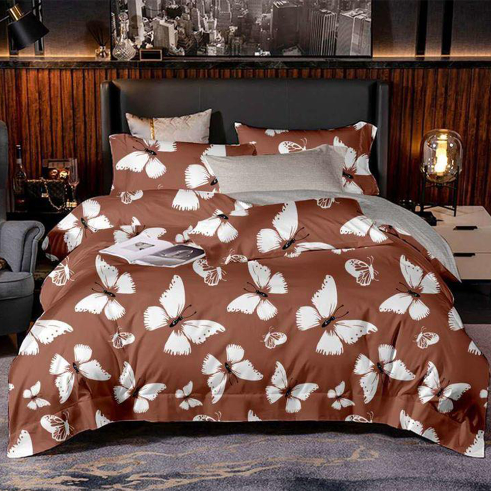 Lenjerie Bumbac Satinat Ciocolatiu Fluturi Albi LBD0197