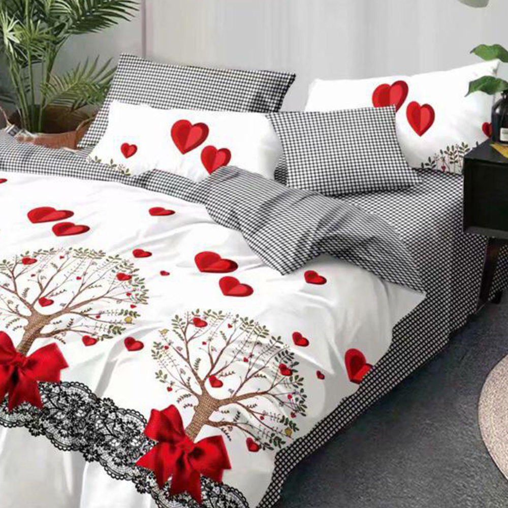 Lenjerie DUO Bumbac Satinat Visinie Crini Albi LBD0149Cearceaf cu Elastic - 160/180x200 + 2 Fete Perna, Albastra Inimioare Negre - CE0039