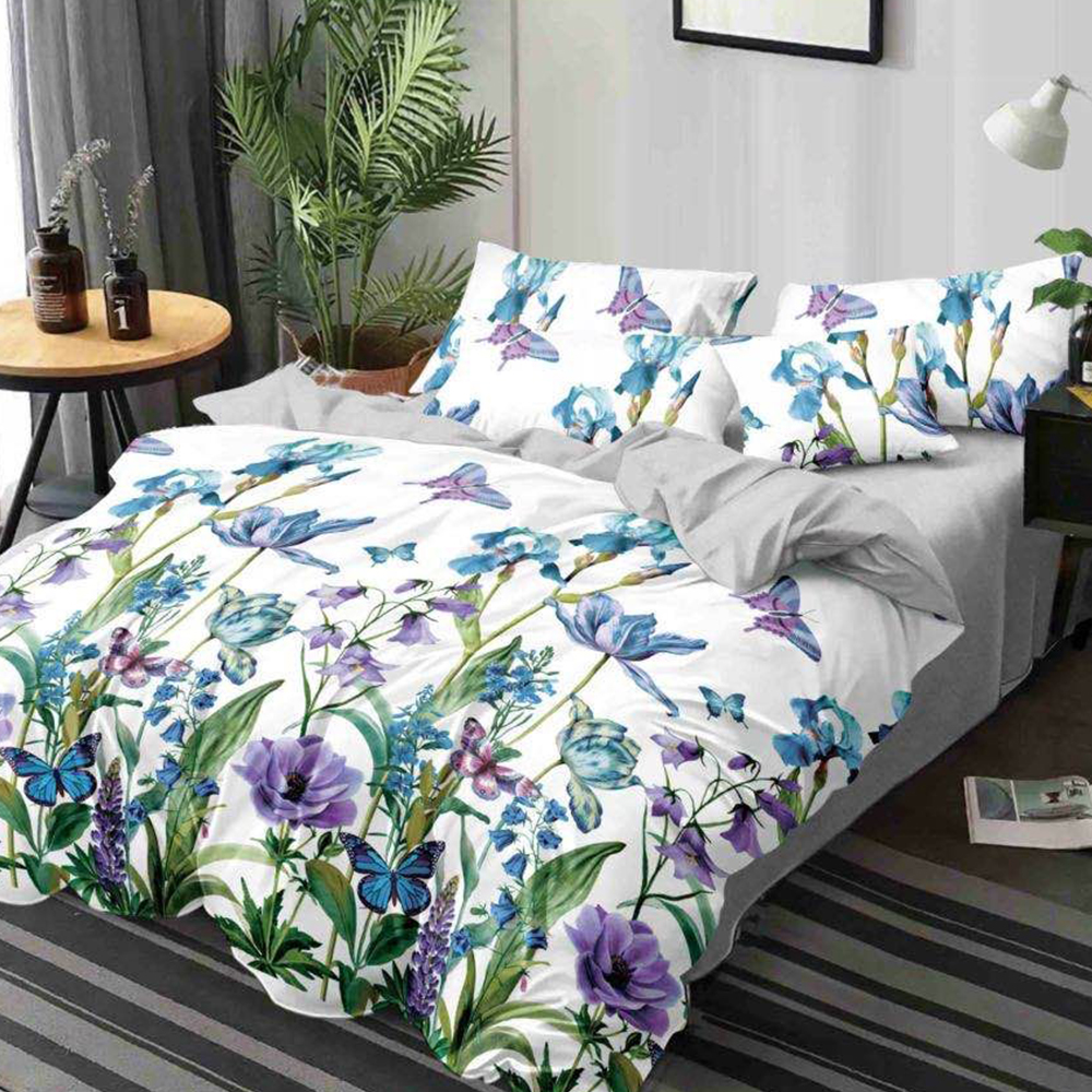 Lenjerie Bumbac Satinat Flori Mov LBD0368