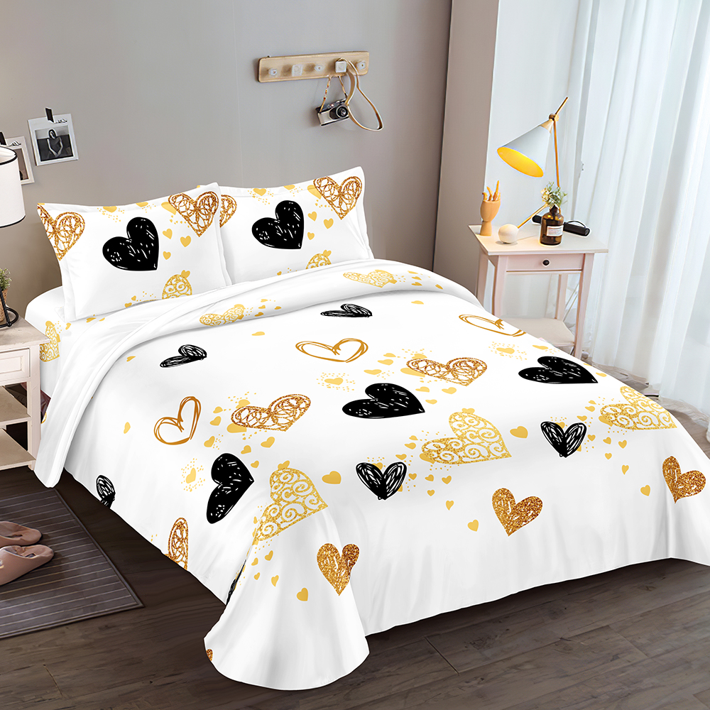 Lenjerie Bumbac Satinat Inimioare Aurii LBD0336