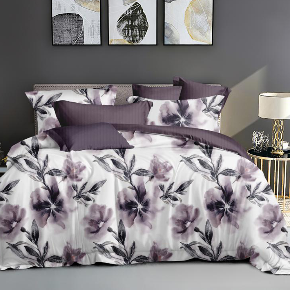 Lenjerie Bumbac Satinat Mov Flori Mari LBD0314
