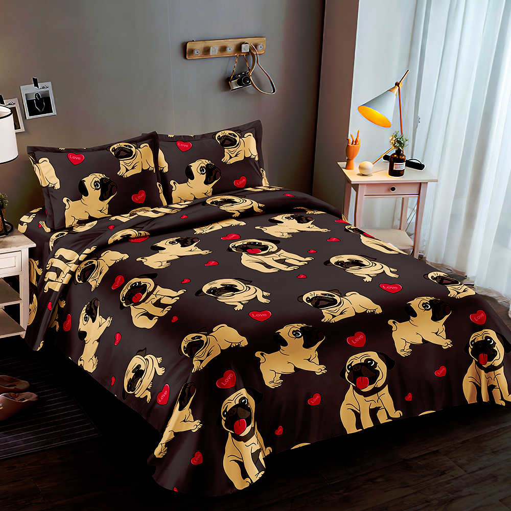 Lenjerie Bumbac Satinat Retro Pug LBD0342
