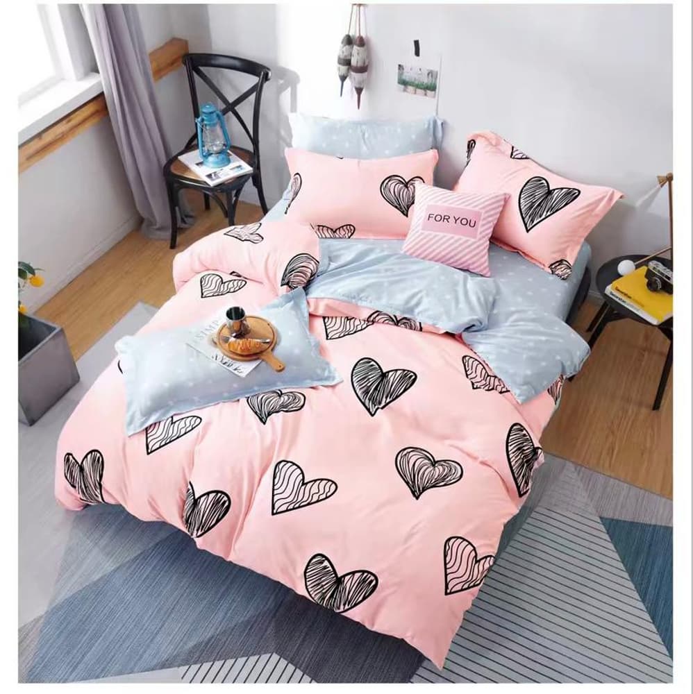 Lenjerie Bumbac Satinat Roz Inimioare Desenate LBD0178