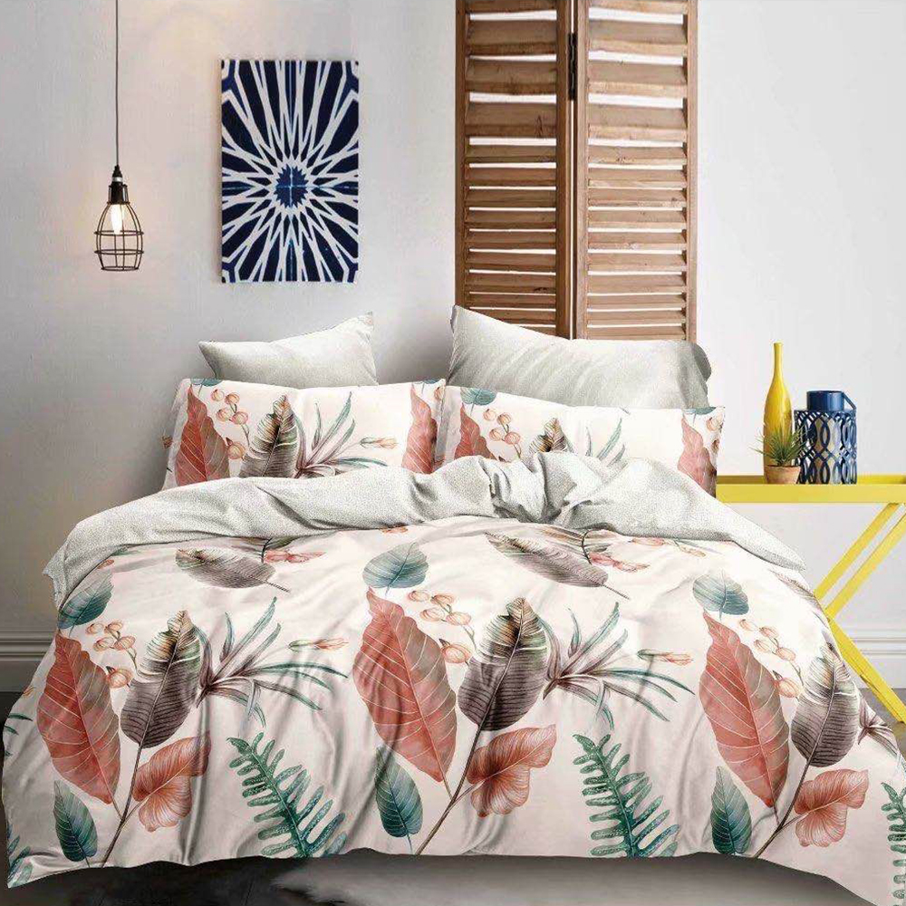 Lenjerie de pat 2 persoane (4 piese) confecționată din bumbac satinat de calitate superioară, foarte plăcut la atingere. Datorită amestecului optim de bumbac și satin, această lenjerie asigură confort sporit prin textura sa moale și fină. Aspectul satinat al acestei lenjerii oferă eleganță și rafinament dormitorului. Cele 4 piese cu imprimeu modern sunt croite pentru a se potrivi patului tău matrimonial!
