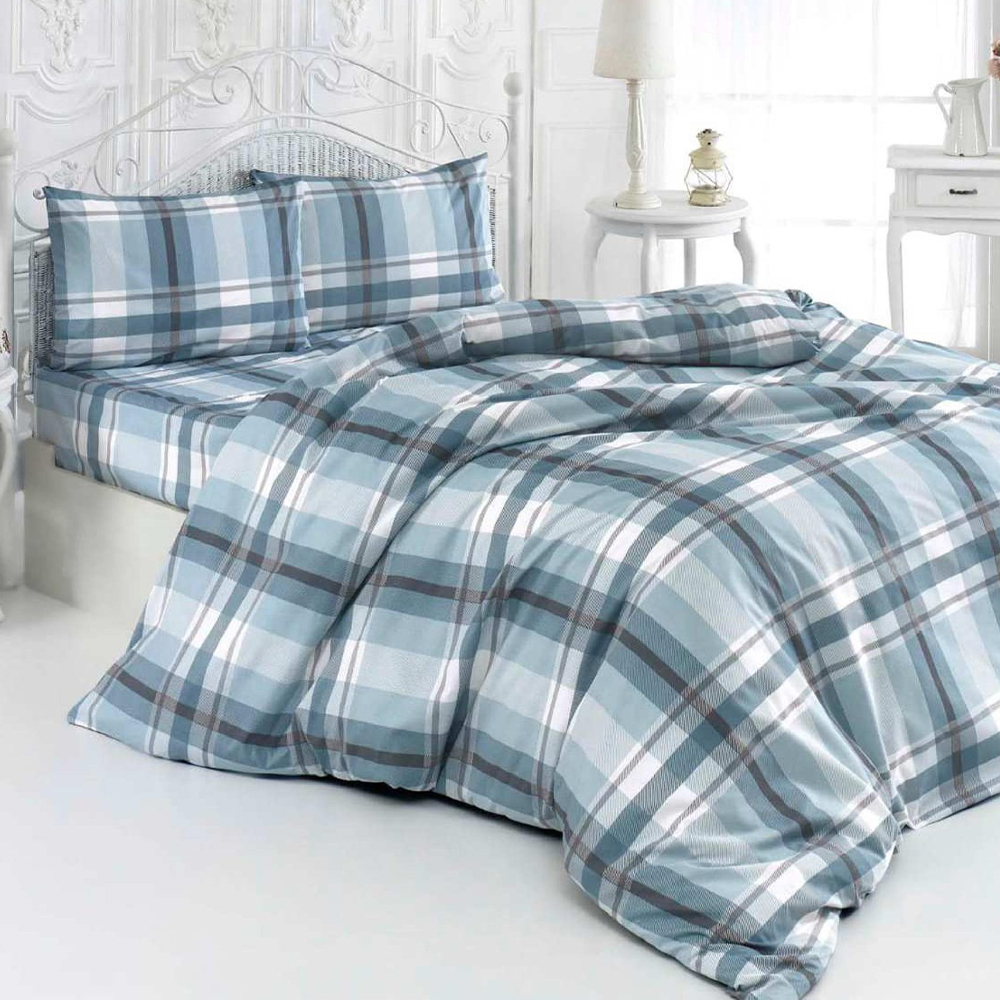 Lenjerie Bumbac Turcesc 100% - Carouri Albastre LTUR027