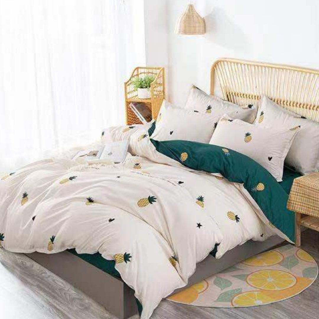 • CONȚINUTUL LENJERIEI: Acest set conține 4 piese: 1 cearceaf de pilotă (dimensiuni: 200x230 cm ±5cm), 1 cearceaf de pat cu elastic (dimensiuni: 180x200x25 cm ±5cm) și 2 fețe de pernă (52x80 cm ±5cm).