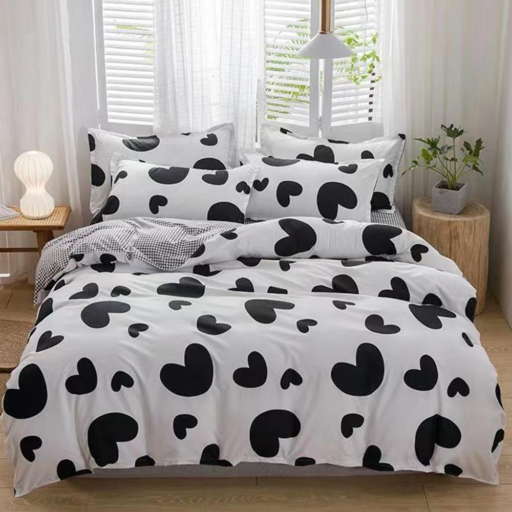 Lenjerie DUO Bumbac Satinat Alba Inimi Negre LBD0169
