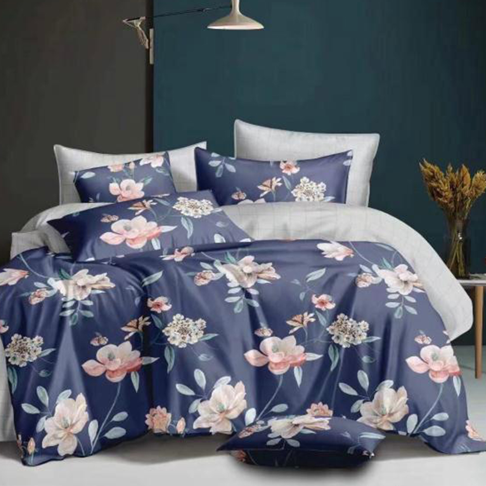 Lenjerie DUO Bumbac Satinat Indigo Bujori Roz LBD0166