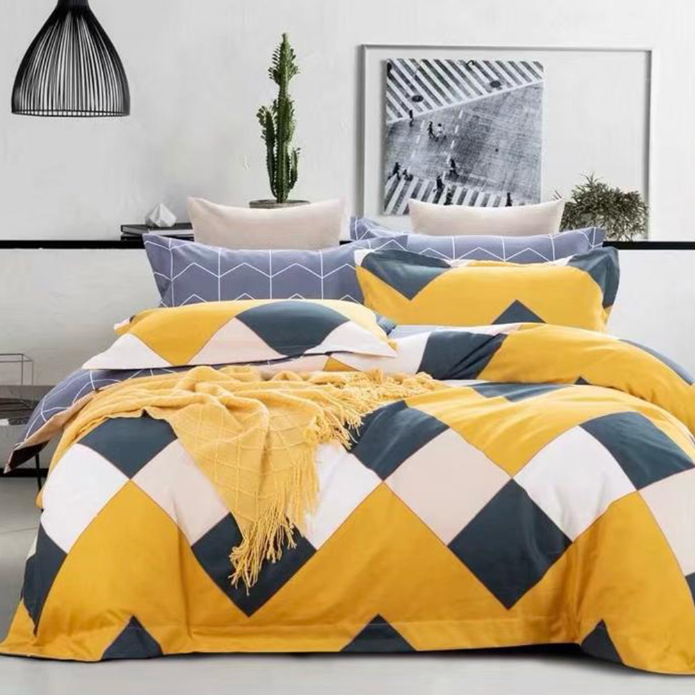 Lenjerie DUO Bumbac Satinat Romburi Galbene LBD0155