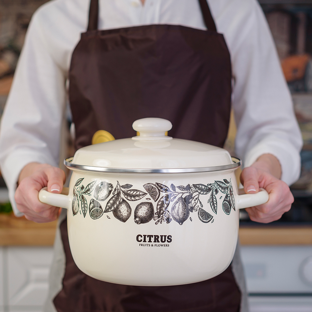 Oala Bombata Dublu Emailata cu Capac - Capacitate 2.5 L - Model Citrus Crem OER0112