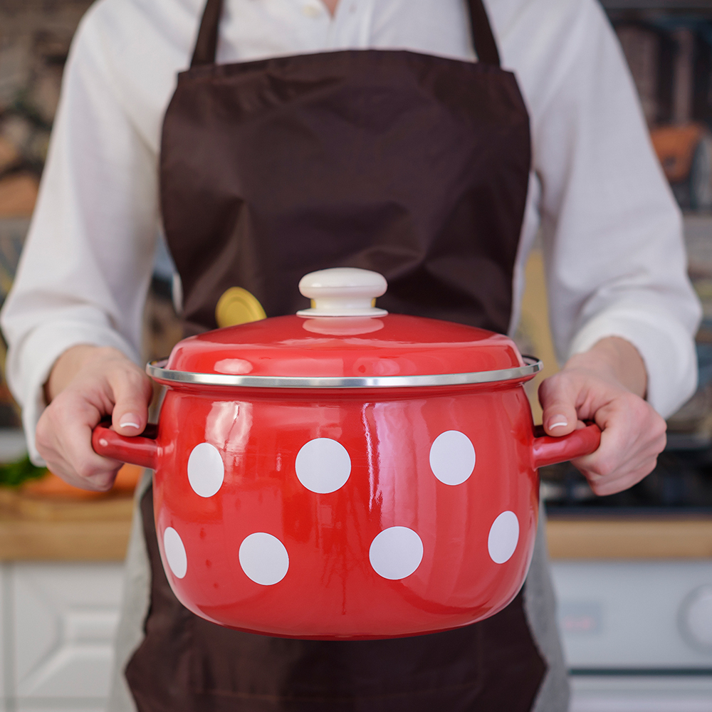 Utilează-ți bucătăria cu oale de calitate, la fel de bune ca cele pe care le foloseau și bunicile noastre în trecut. Mâncarea iese mai gustoasă, iar preparatele sunt savurate întotdeauna de întreaga familie, atunci când sunt gătite cu drag într-o oală dublu emailată cu capac. Oala este fabricată din oțel carbon laminat, este acoperită cu dublu strat de email și vine însoțită de capac pe măsură. O poți folosi cu încredere pe orice tip de plită sau aragaz, inclusiv pe cel cu inducție.